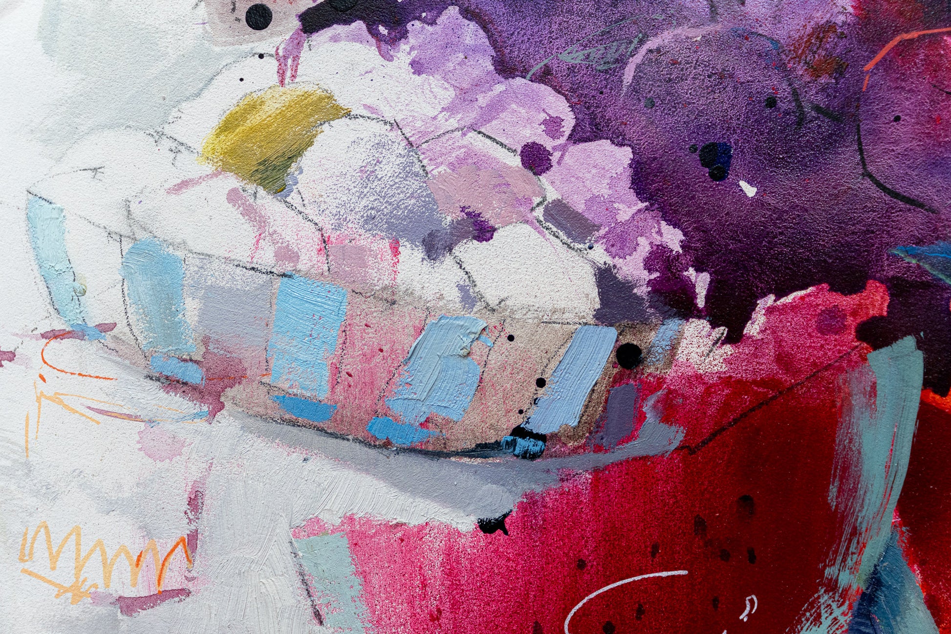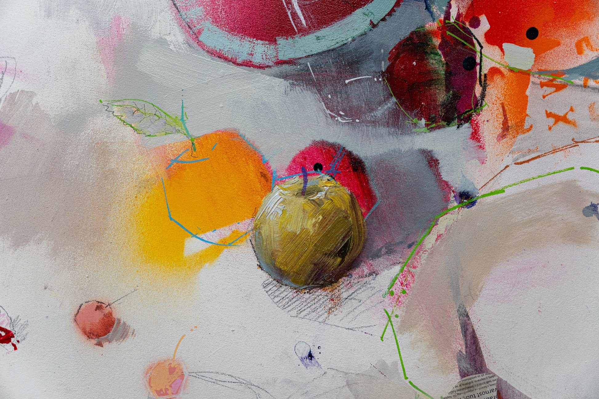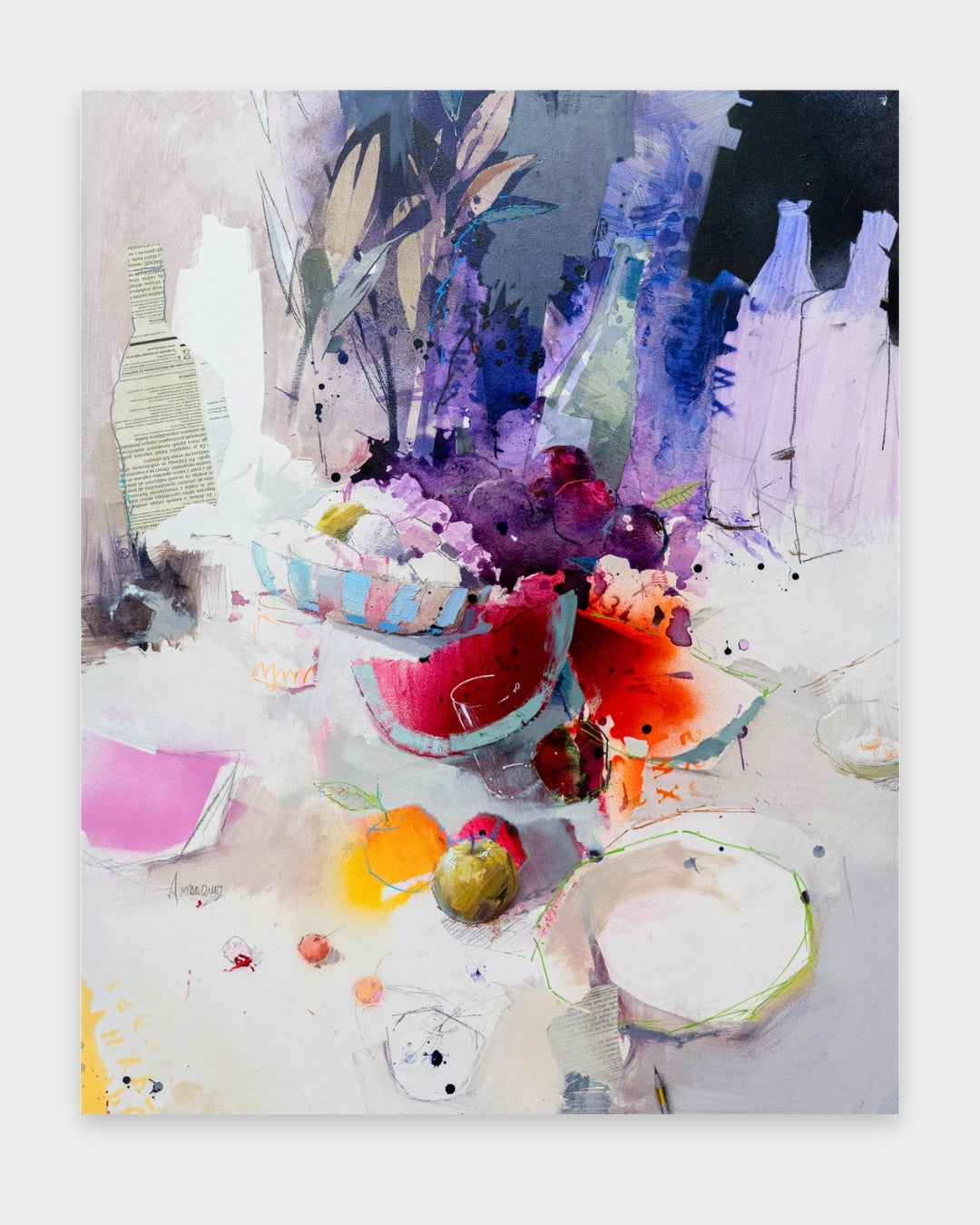 Me gusta la fruta roja presents a simple still life elevated through Alberto Márquez’s sensitive observation of light and material. Working with mixed media, the artist builds the surface through layered textures and tonal variations, giving the fruit a vivid presence within the composition. The deep reds become the visual focus, contrasted with softer surrounding hues that enhance their intensity. Subtle shadows and gentle reflections evoke the calm clarity of Mediterranean light, while Márquez’s controlled yet expressive brushwork lends the scene a quiet sense of warmth and immediacy. Through this restrained arrangement, the artist invites the viewer to appreciate the beauty found in ordinary moments.