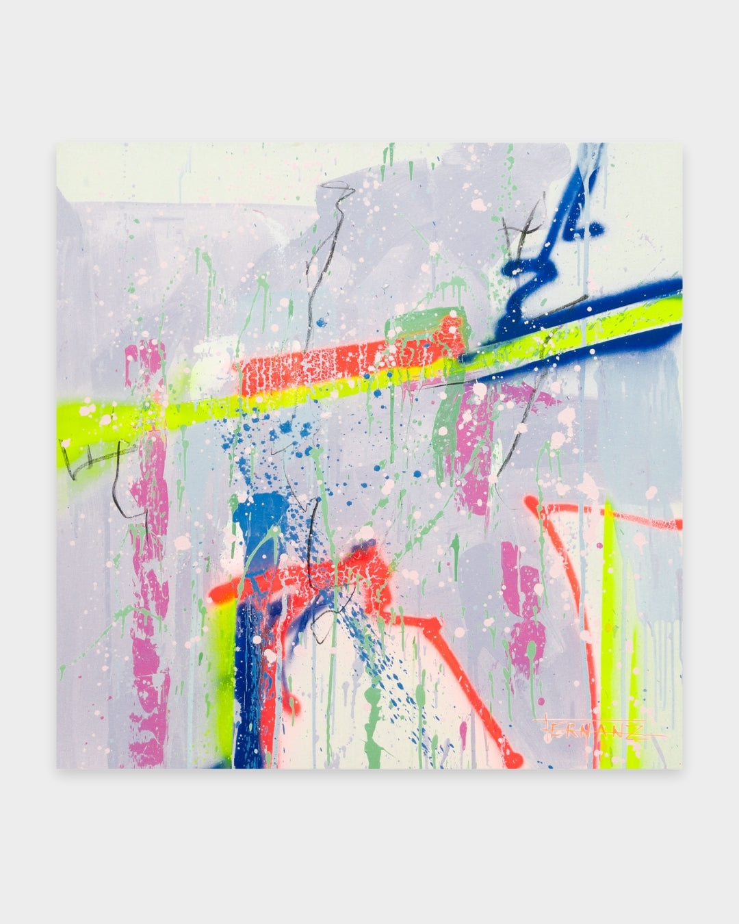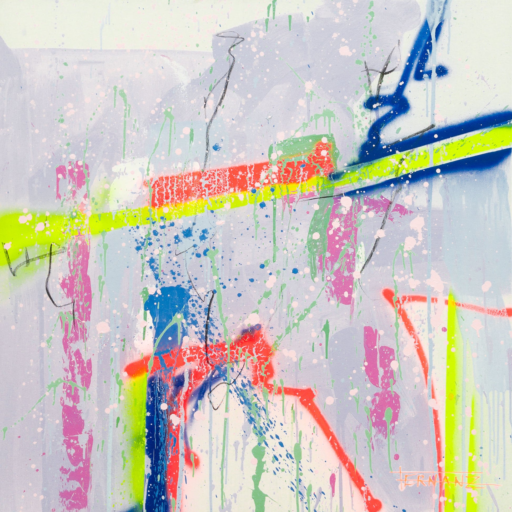 This artwork by Fernanz explores emotions and organic impulses through an explosion of color and movement. With a vibrant palette where fluorescent tones take center stage, the artist captures the energy of new trends, creating a composition full of vitality and dynamism. Each brushstroke seems to vibrate, inviting the viewer to immerse themselves in an intense and captivating visual experience.