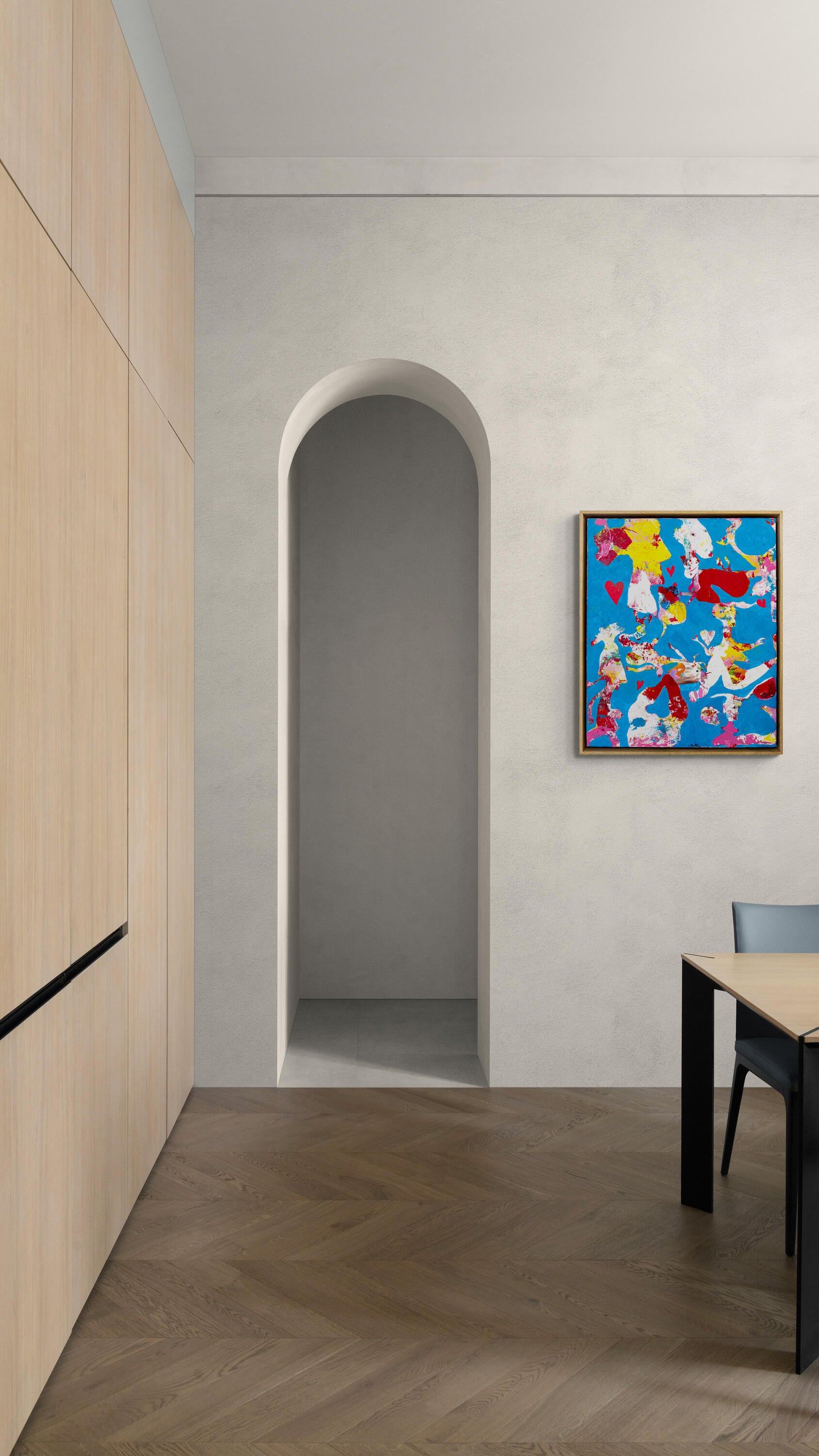 Dancing Path of Joy unfolds in a radiant harmony of deep marine blue and light sky tones, where fluid movements seem to trace invisible rhythms of happiness. Leonardo Lanzolla captures the essence of motion and serenity — a visual dance between sea and sky. The interplay of blues invites the viewer to breathe, to feel uplifted, and to follow this luminous path where joy moves freely, weightless and pure.