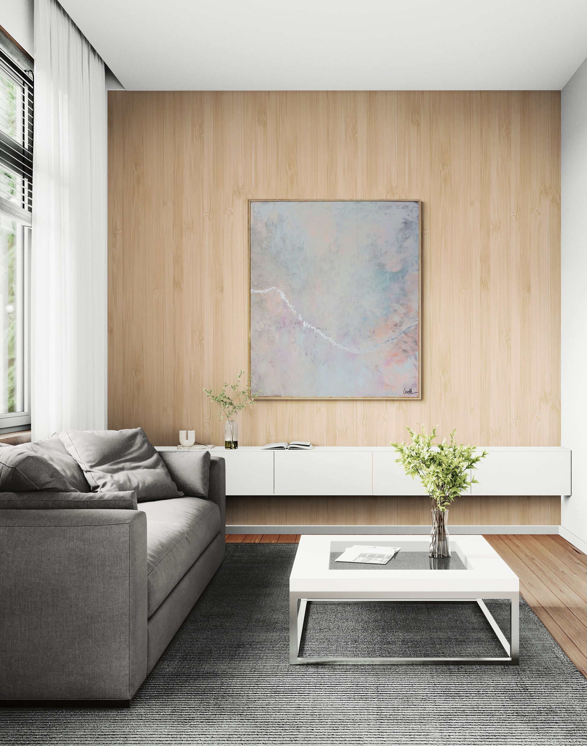 An abstract composition where soft, radiant hues flow into one another, evoking the gentle warmth and serenity of a fading sunset. Visual textures emerge through layered mixed media, enhancing its atmospheric depth and inviting a quiet sense of contemplation.