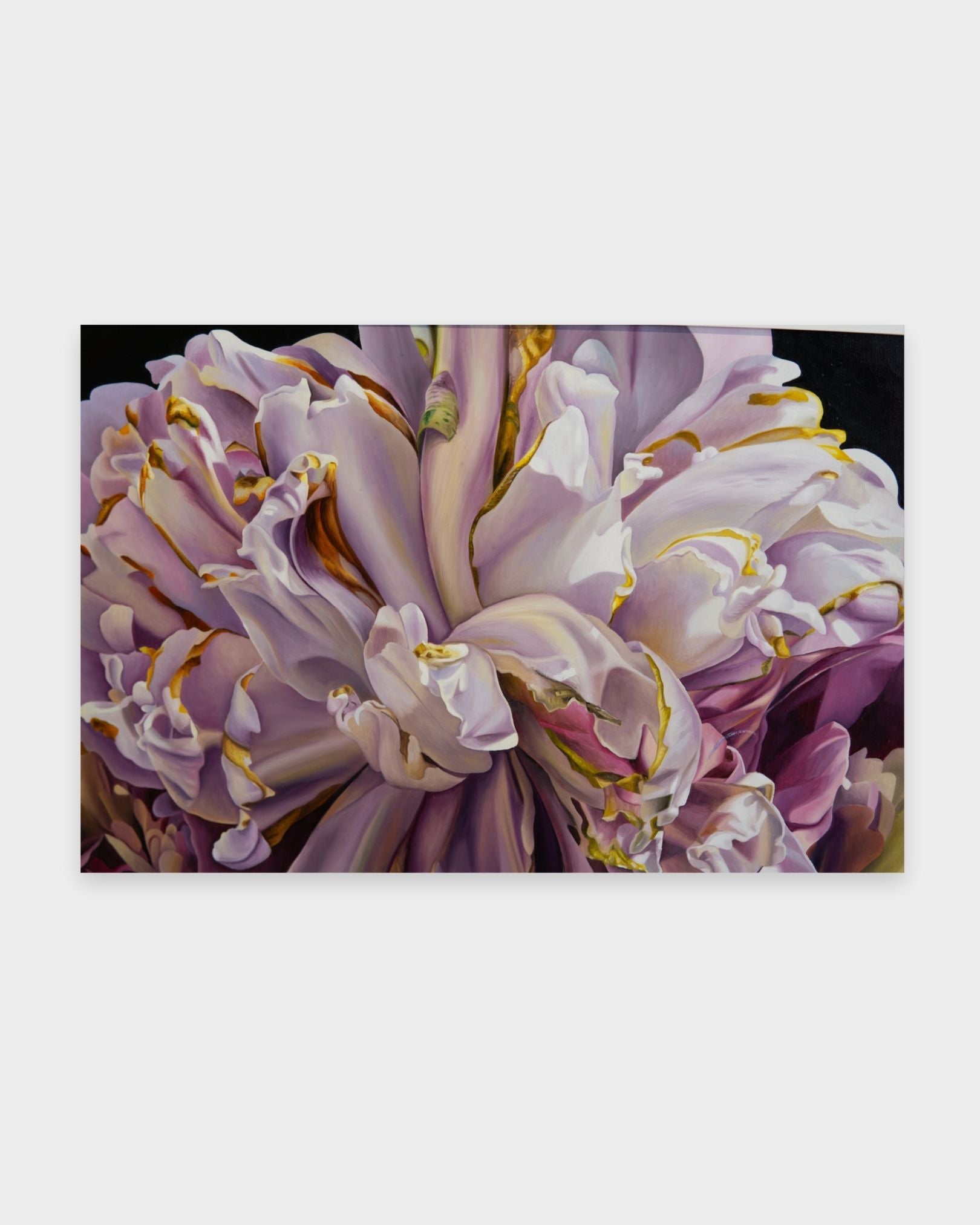 In Esencia Delicada, Casas captures the fragile beauty of a single flower with striking hyper-realism. Every petal, subtle shadow, and delicate texture is rendered with extraordinary precision, transforming a simple bloom into a mesmerizing study of light, form, and color. This work exemplifies Casas’ mastery of detail and his ability to elevate natural subjects into timeless, contemplative pieces.