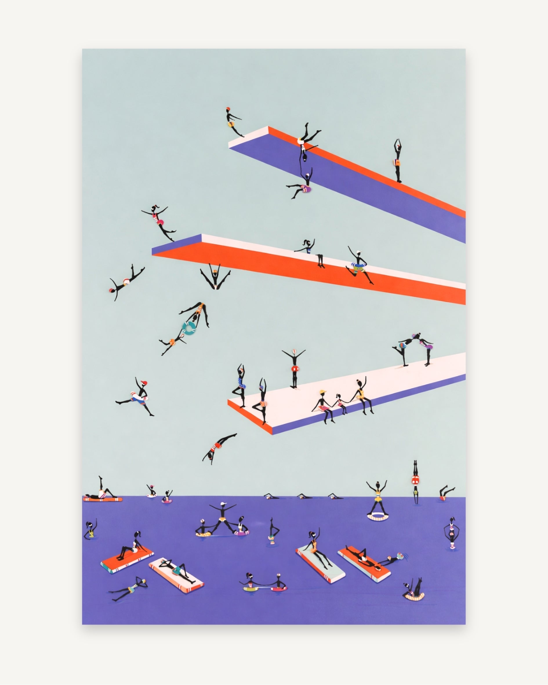Her use of bold, luminous color and subtle depth creates an immersive, almost dreamlike atmosphere. The compositions feel dynamic yet effortless, as if the figures are fully carried by the joy of the moment.