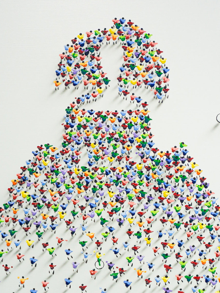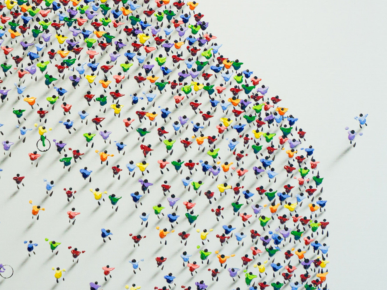 Bartus creates an impressive representation, using 3d figures of people, his smart use of mix media to immerse ourselves in the artwork leave the spectator amazed. The brilliantly made shadows are a testament of his study of technique and how important it is to catch our eyes. Also, with his own creativity and style he transmite us an important sense of how the world must be united, without barriers of colors and more.